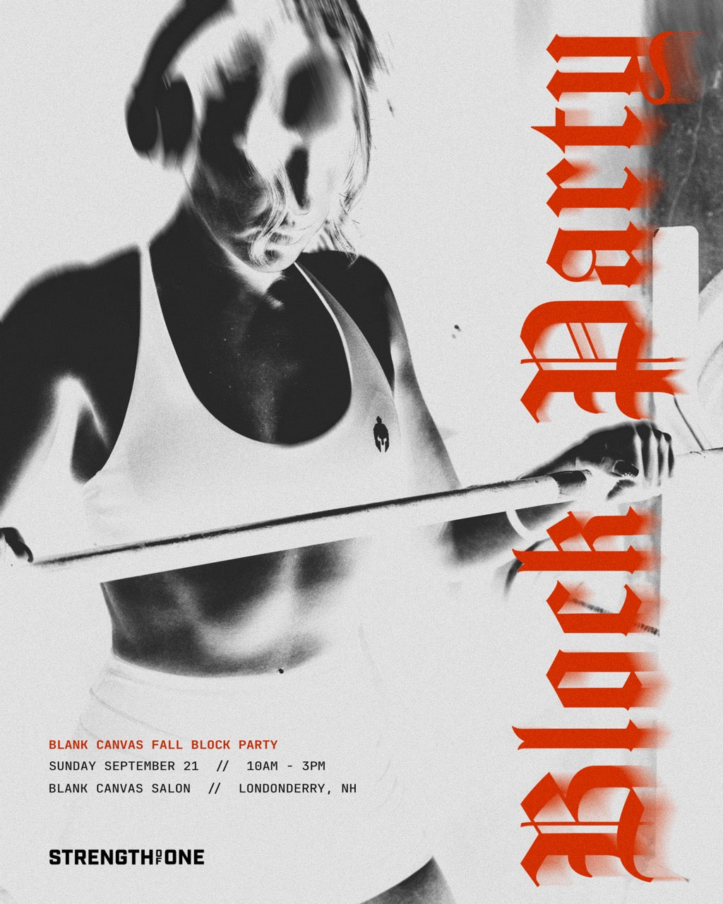 Get ready, New Hampshire! Strength of One is pulling up to the Blank Canvas Fall Block Party at Blank Canvas Salon and you don’t want to miss it. This one day event brings together the community for an afternoon of shopping, activities, and exclusive access to SO1.